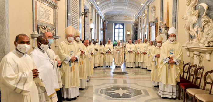 Nach der Zeremonie kamen viele Menschen als Pilger in die neu gestaltete Kapelle des Mutterhauses der Gesellschaft, wo die sterblichen Überreste des soeben seliggesprochenen Franziskus Jordan in einen Reliquienschrein aufbewahrt werden. Es war sehr bewegend, die religiöse Atmosphäre und die Andacht vieler geistlicher Söhne und Töchter von P. Franziskus Jordan zu sehen, sowie seine Verwandten, die eigens zu dieser Feier nach Rom gekommen waren, wie auch viele andere Freunde und Sympathisanten. Zwar ließ die Pandemie nicht zu, dass so viele Menschen kommen konnten, wie es ursprünglich erwartet, gewünscht und geplant war. Wahr ist aber auch, dass selbst die Pandemie nicht verhindern konnte, dass viele Menschen nah und fern sich tief verbunden fühlten und an ihren Orten in allen Teilen der Welt mitfeierten und an der Dankbarkeit für die Seligsprechung von Pater Franziskus Jordan teilhatten.