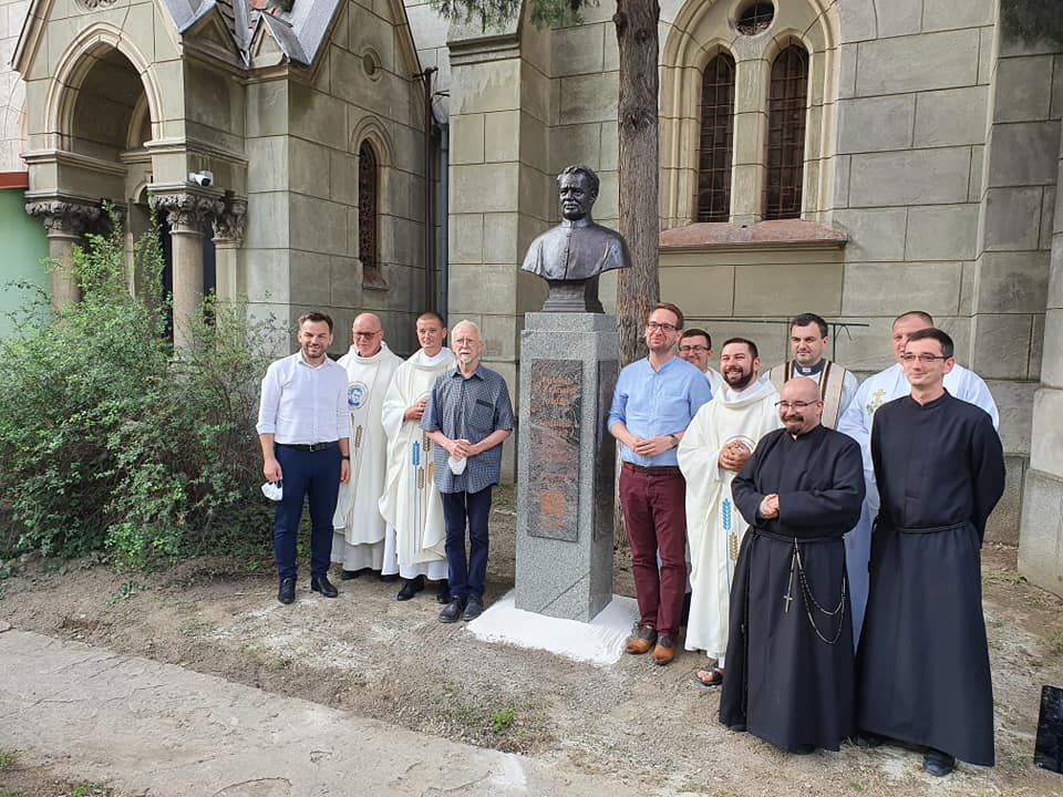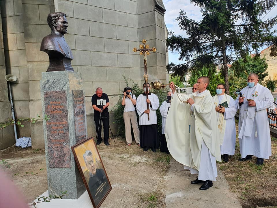 Nach dem Gottesdienst zog die Festgemeinde mit dem neuen Reliquiar von P. Jordan in Prozession hinaus zu einer kleinen Gartenfläche neben dem Kirchengebäude, wo eine neue Bronze-Büste des seligen P. Jordan aufgestellt war. Diese wurde feierlich enthüllt und gesegnet. Sie war in einer ungarischen Werkstatt nach einer Gips-Büste gegossen worden, die von dem Temeswarer Künstler Luigi Varga geschaffen wurde. Die Büste ist von der Straße aus gut sichtbar. Ihre Beschriftung war daher einerseits sehr kurz gehalten, da man im Vorbeigehen keinen langen Text auffassen kann, andererseits bietet ein QR-Code die Möglichkeit, sich in zeitgemäßer Weise bei Interesse näher über P. Jordan zu informieren.