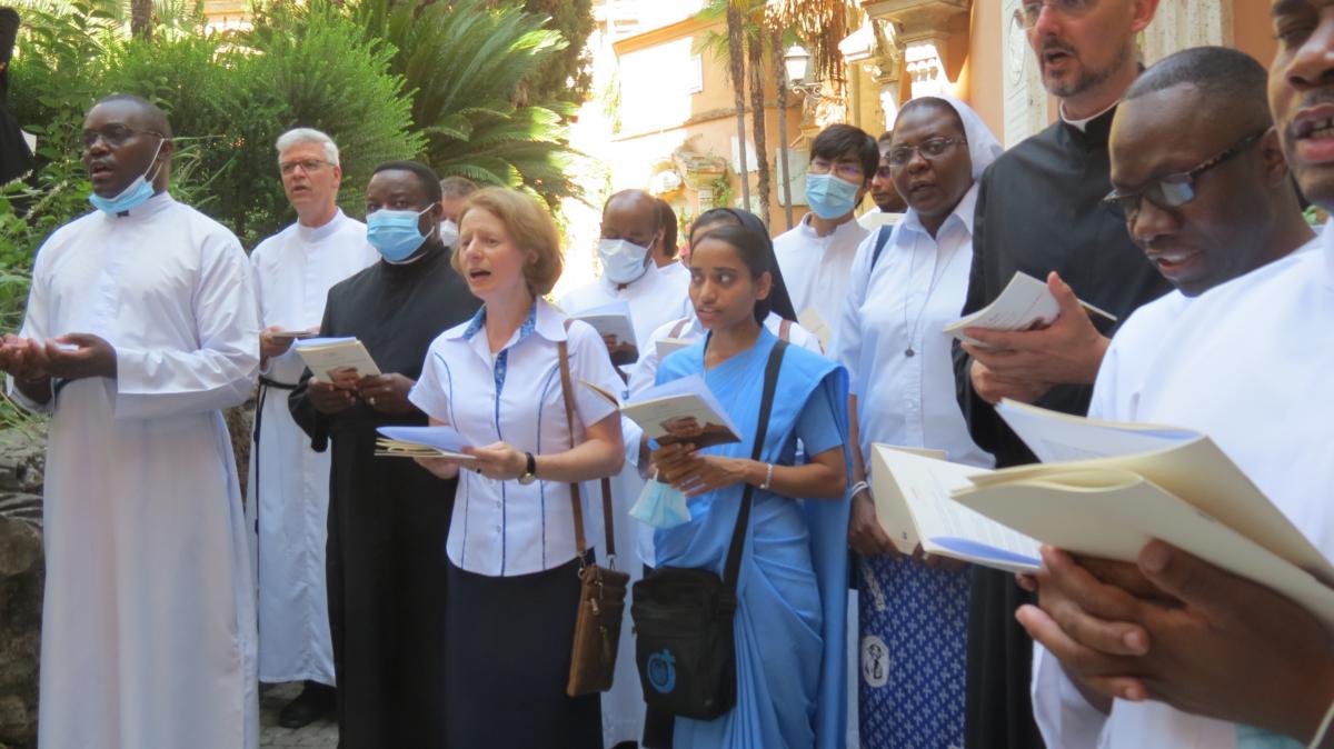 Gegen 11.00 Uhr ging die Gemeinschaft in die Via della Conciliazione und versammelte sich zur Eucharistiefeier in der Kapelle des Mutterhauses der Gesellschaft. An diesem Ort, der wirklich zu Gebet und Meditation einlädt, werden die sterblichen Überreste des Gründers in einem schönen Schrein aufbewahrt.