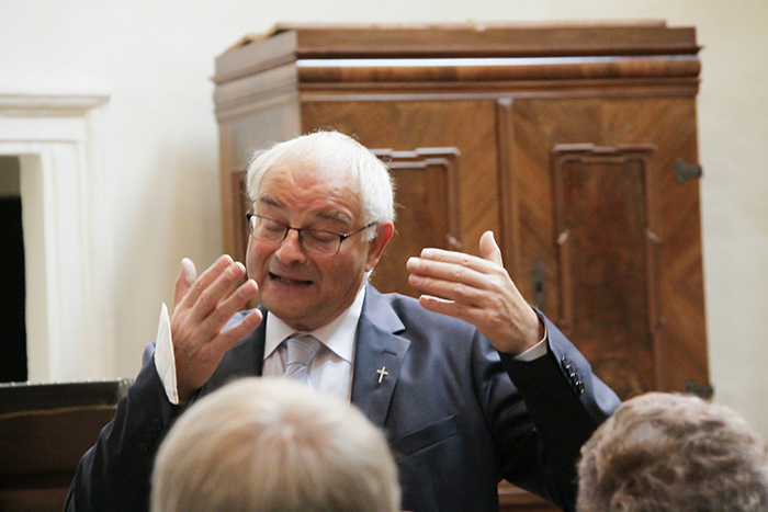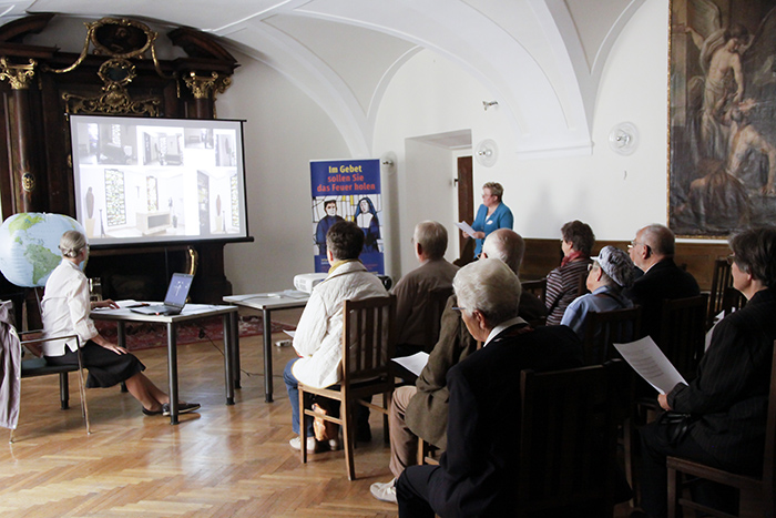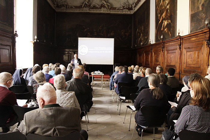 Drei Vorträge vertieften dann die Thematik. Martin Kolosz präsentierte sein "Lebensbild" über P. Jordan. P. Peter van Meijl erzählte, warum der Selige am Grab von Petrus Canisius den Entschluss zur Ordensgründung fasste. Und Sr. Heidrun Bauer und Sr. Ulrike Musick berichteten über die (baulichen) Veränderungen, die in den Mutterhäusern der beiden Ordensgemeinschaften in Rom getätigt worden waren.