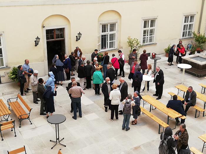 Die anschließende Vesper stand unter dem Motto: „Im Gebet sollen Sie das Feuer holen“; sie wurde stimmungsvoll von Sr. Maria Schlackl geleitet. Den Abschluss bildete eine Agape im Innenhof von St. Michael.