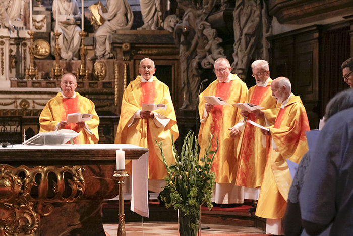 Das ist bei jedem von euch auf unterschiedliche Weise spürbar: Ihr seid Priester aus Passion – aus großer Leidenschaft und mit großer Freude nach all den Jahren, bzw. durch all die Jahre hindurch. Unser Gründer, der selige Franziskus Jordan legte uns ans Herz: „Sie sind berufen zu leuchten und der Welt das Licht zu zeigen“. Euer Leuchten kommt aus dem Inneren, aus den Augen, und ist kein äußerliches Glänzen. Es kommt aus der täglich durchgehaltenen Treue, aus dem auch mühevollen Dranbleiben, das Feuer zu hüten!
