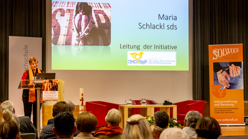 Sr. Maria Schlackl SDS hat während ihrer Eröffnungsrede in einem Moment der Stille zu einer Gedenkminute an jene junge Frau aus Rumänien eingeladen, die am 24. September in Ternberg, OÖ, von ihrem Freier ermordet worden ist.