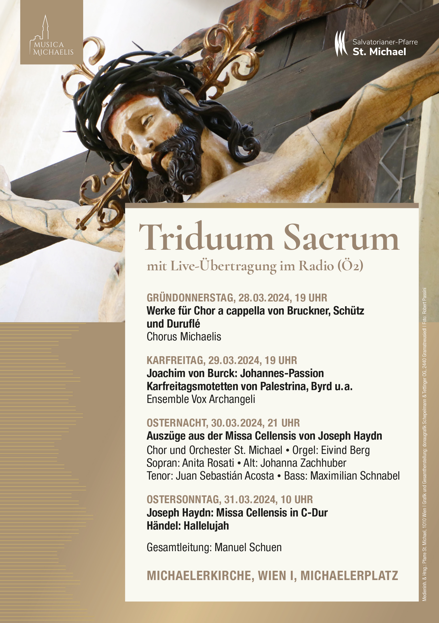 Am Gründonnerstag, Karfreitag und Samstag (Osternacht) werden die Gottesdienste aus der Michaelerkirche in Ö2 live übertragen. Sie sind herzlich eingeladen, mit uns Salvatorianern zu feiern.