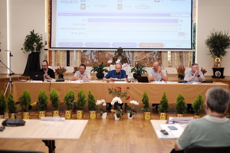 Die beiden Vormittagssitzungen waren der internen Verfassung und Organisation des Kapitels gewidmet. In einer Reihe von Abstimmungen wurde über alle Ämter und Aufgaben des Kapitels abgestimmt, wie sie in den Konstitutionen und dem Generaldirektorium vorgesehen und vorgeschrieben sind: die Tagesordnung wurde angenommen, die parlamentarischen Verfahren, der Tagesplan, der Liturgieplan, die vorgeschlagenen Sprach- und Themengruppen für die Kommissionsarbeit sowie der gesamte Kapitelkalender wurden genehmigt.