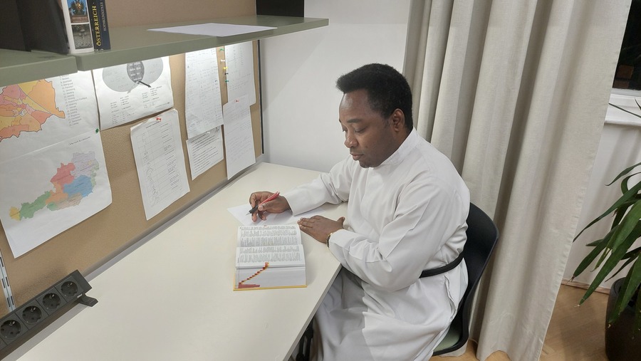 Als Vertreter des Generalats war P. Michael Tesha SDS aus Rom angereist. Der aus Tansania stammende Salvatorianer hatte sechs Jahre in Wien gelebt und studiert und ist daher der Gemeinschaft besonders verbunden. In seiner Funktion als Generalausbildungsbegleiter überbrachte er die Grüße des Generalats und berichtete vom herausfordernden Entstehungsprozess des Instituts, dessen Grundidee 2022 in Rom erstmals vorgestellt und diskutiert wurde. „Das Studium der Geschichte und Spiritualität unserer Gemeinschaft wird nicht nur unseren jungen Mitbrüdern helfen, sondern allen, die mit den Salvatorianern zusammenarbeiten. Es ermöglicht ein tieferes Verständnis der salvatorianischen Identität und des Charismas und bietet spirituelle wie moralische Orientierung“, betonte P. Tesha.